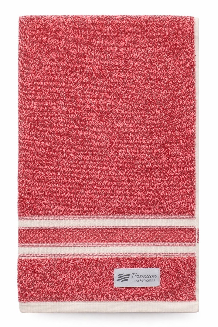 Acompanha 1 toalha de banho felpuda Teka Ambar na cor Vermelha.